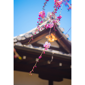 お寺とハナカイドウ